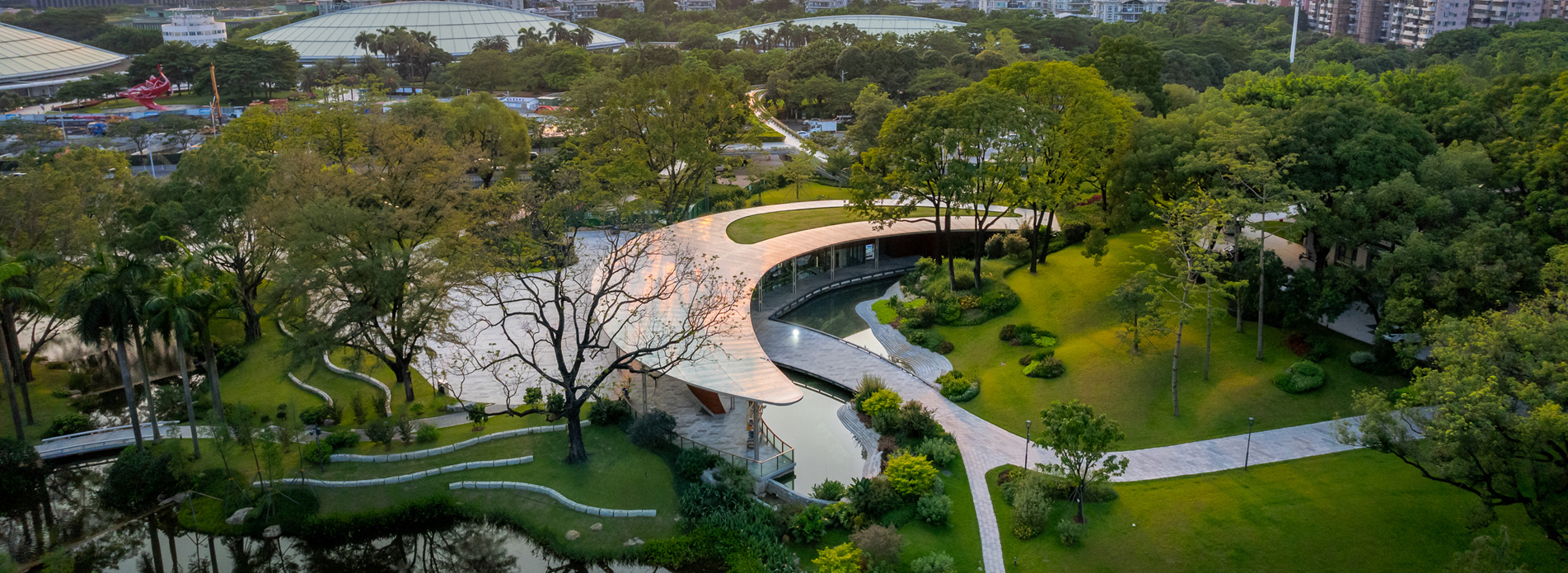 作為國(guó)賓館,松園賓館是嶺南園林的“代表作”。項(xiàng)目延續(xù)“疏林草地”風(fēng)格,保留原有喬木,將原有綠島提升為時(shí)花花境,并采用生態(tài)自然手法,以竹子、中型喬木為骨架,弱化建筑生硬感;同時(shí),對(duì)臨水平臺(tái)進(jìn)行改造,提高...